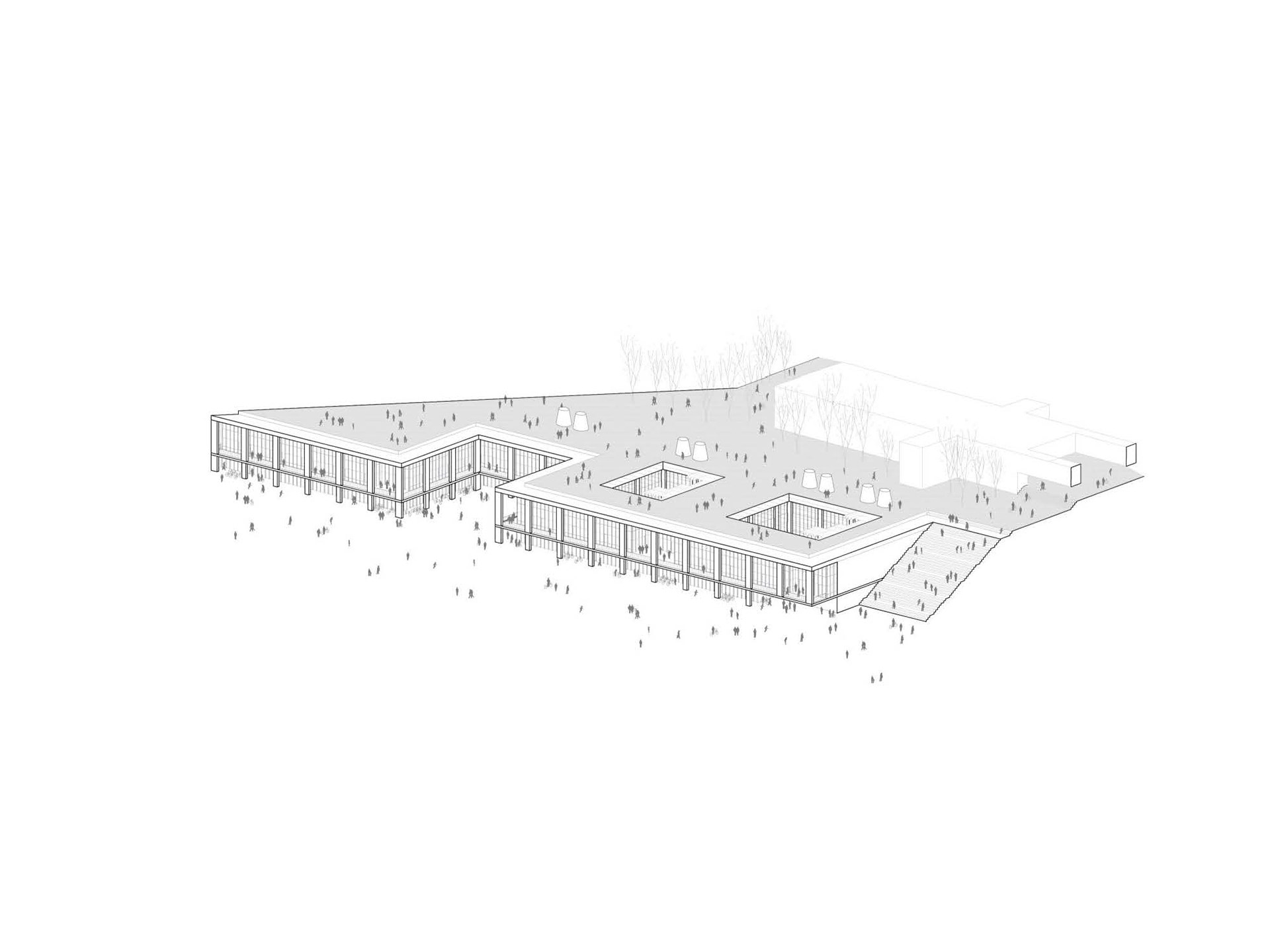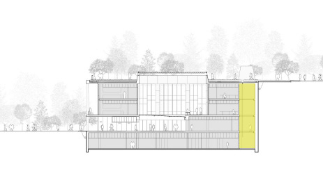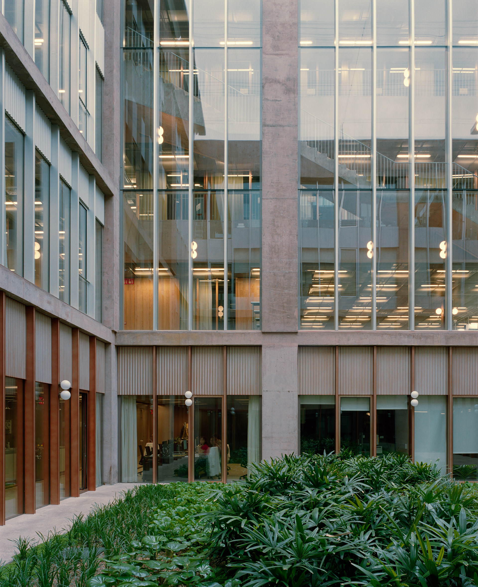 L’edifici es converteix en un plec de la topografia que finalment desapareix com a una extensió més del parc. La planta queda definida per tres patis i galeries porticades que gestionen la relació interior-exterior donant lloc a espais de trobada i descans. El projecte de reordenació del Campus pretén construir un gran parc connectat a la ciutat i millorar l’accessibilitat i permeabilitat del recinte
