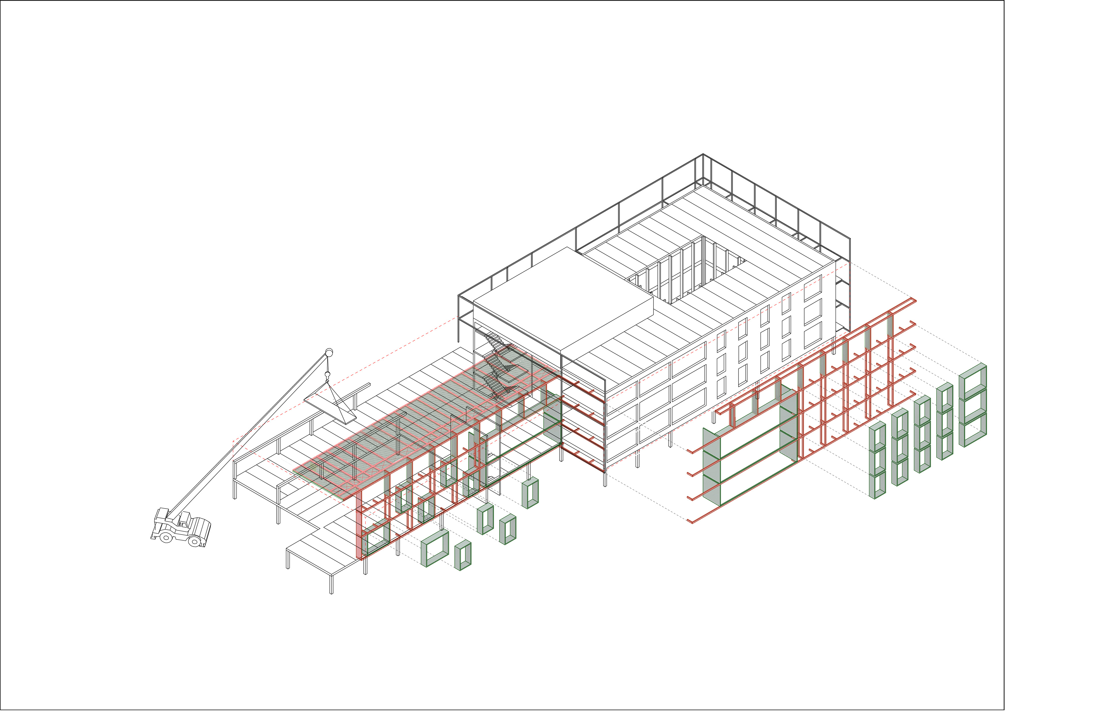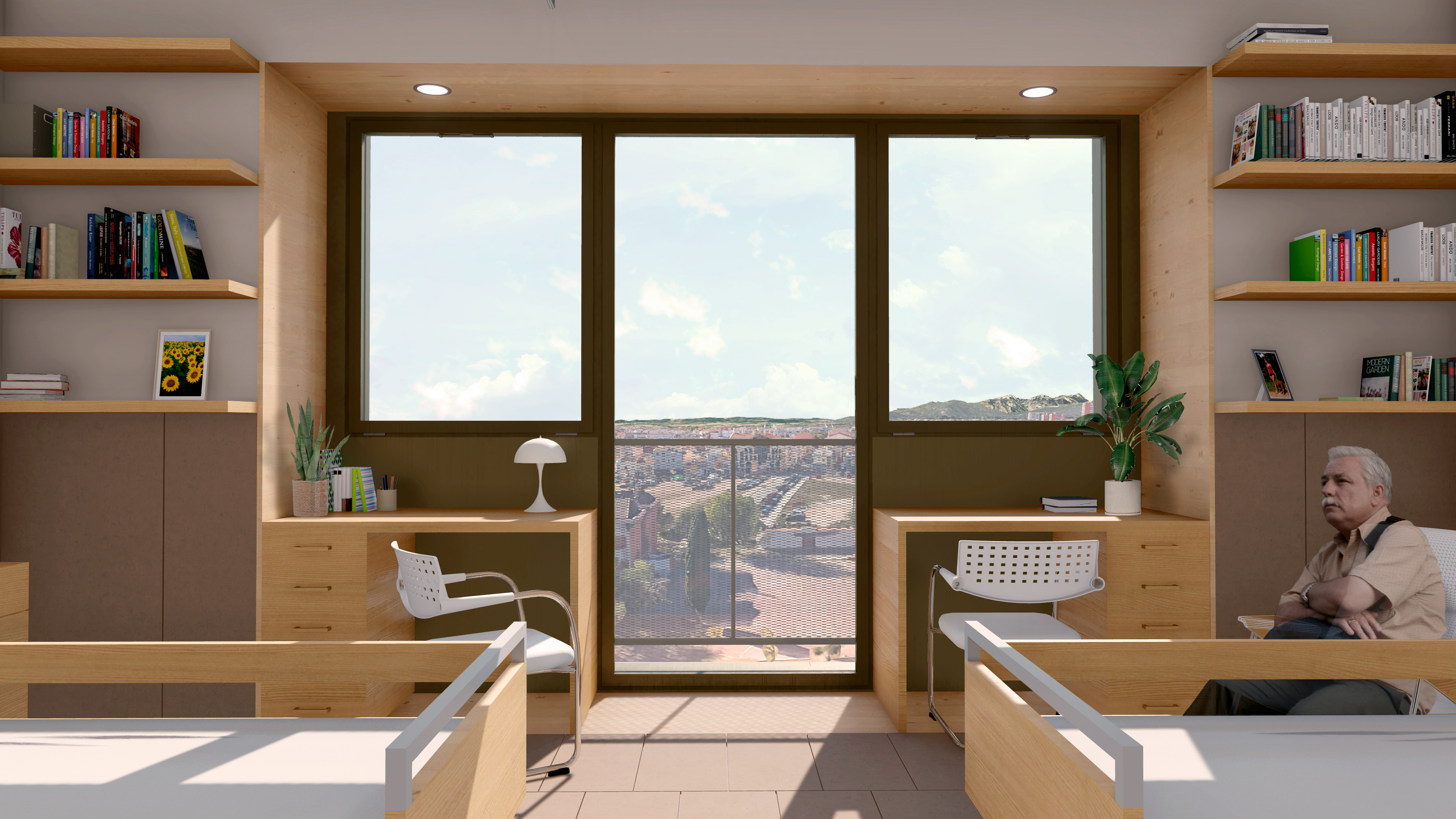 L’aparició del futur Parc de la República fa entendre la residència a nivell urbà, com una part d’un conjunt molt més important. La futura residència es converteix en un equipament autònom que busca el seu lloc i la seva singularitat dins d’un gran parc urbà. Proposem un edifici que busca l’equilibri entre la compacitat i l’ocu pació intensiva sòl per tal d’afavorir l’estalvi energètic i constructiu, per un costat i aconseguir el màxim d’espai lliure, que aprofiti les bones condicions d’assolellament i vistes al parc.