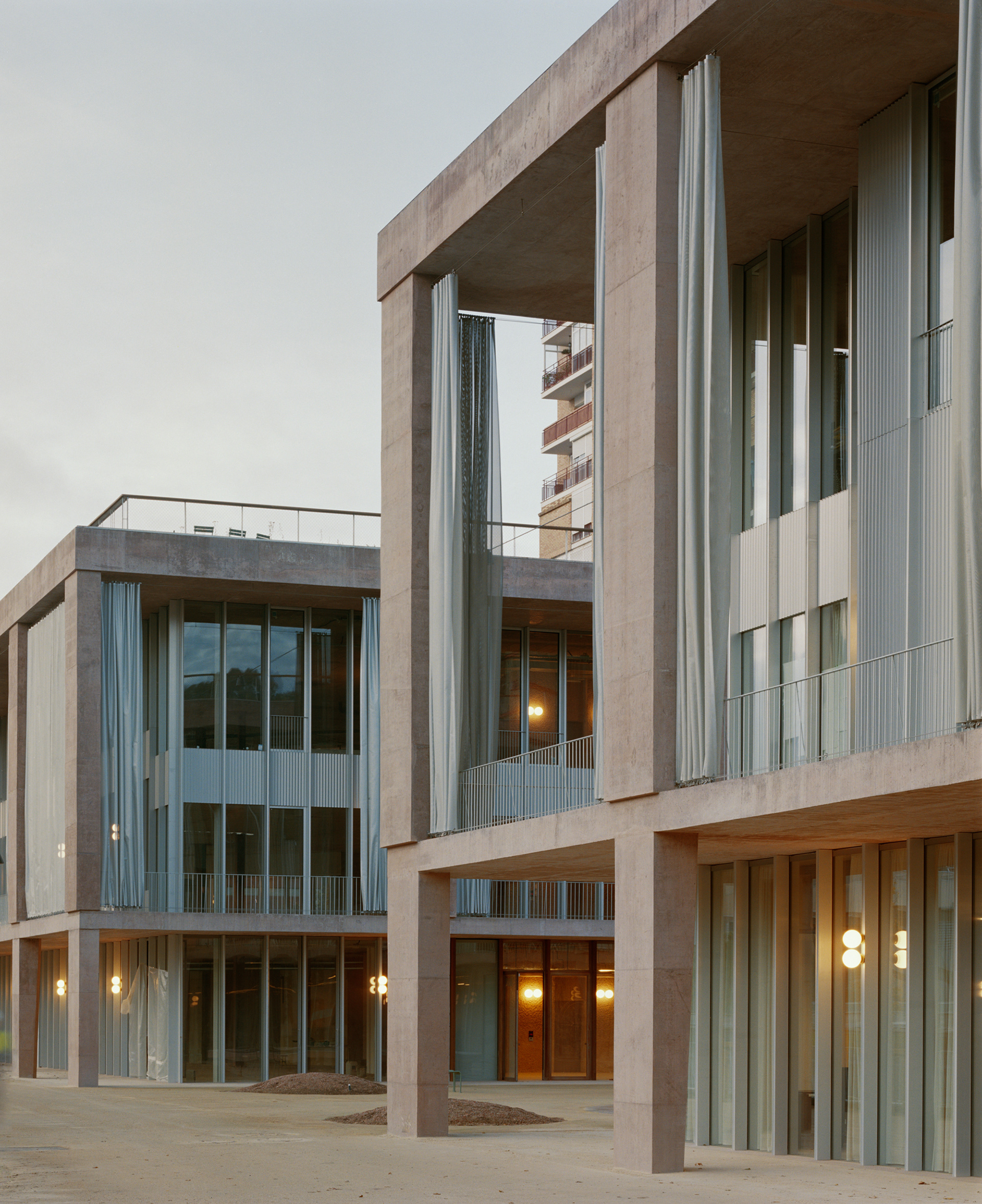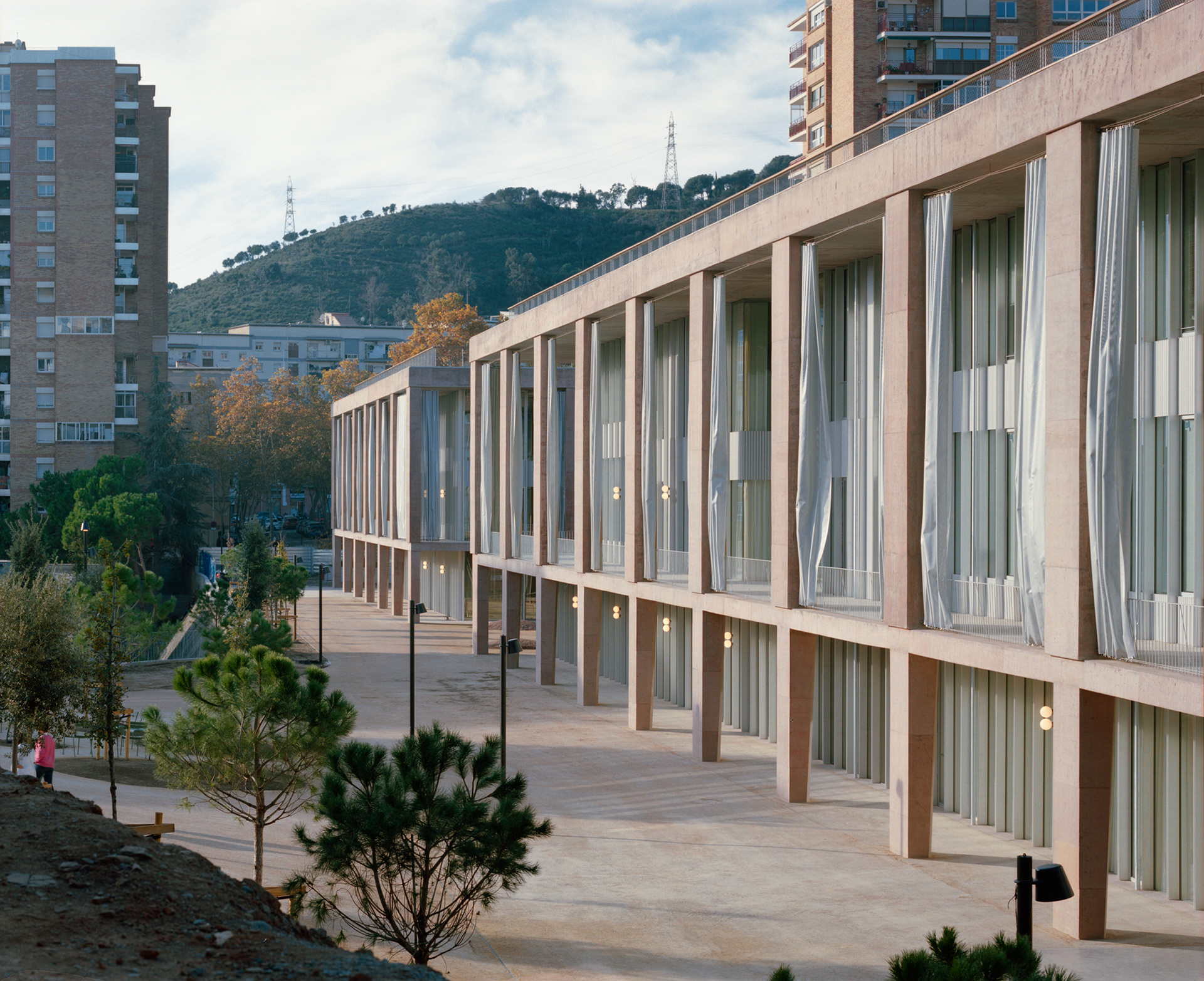 L’edifici es converteix en un plec de la topografia que finalment desapareix com a una extensió més del parc. La planta queda definida per tres patis i galeries porticades que gestionen la relació interior-exterior donant lloc a espais de trobada i descans. El projecte de reordenació del Campus pretén construir un gran parc connectat a la ciutat i millorar l’accessibilitat i permeabilitat del recinte